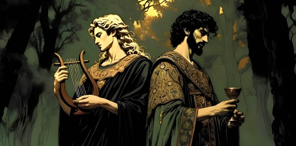 The word “panic” comes from the Greek “panikos,” after the effect caused by looking into Pan’s face — an unfiltered glimpse into nature as it really is. While humans can’t handle such a shock and keep their composure, Phiale was partly immune as she stood there staring at the God in a half-dark valley. Being host to a nymph, she was more likely to frolic in nature than be freaked out by it … unlike Windi, pinned to the ground under the faun’s hoof.